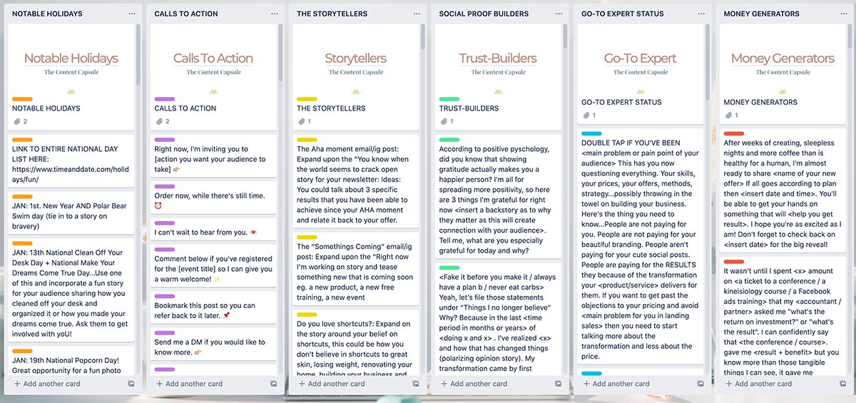 Stay consistently inspired with guided content calendars. Each month, you receive suggested visuals, captions, prompts, and marketing ideas that turn content creation from overwhelming to joyful.