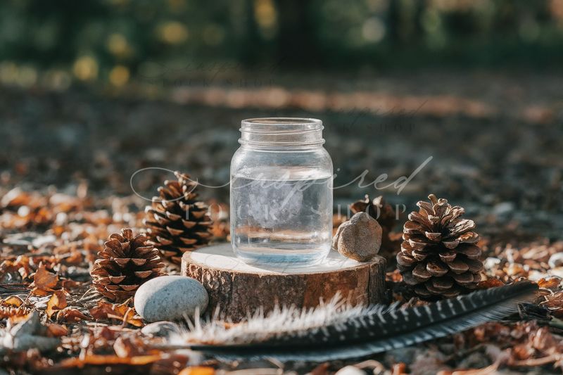 Keywords: AI, arrangement, autumn, calm, capricorn, decoration, earthy, fall, feather, foliage, forest, glass, jar, landscape, logs, mood, natural setting, nature, organic, outdoors, peaceful, pinecone, rock, rustic, serene, still life, stone, sunlight, tranquil, water, wood