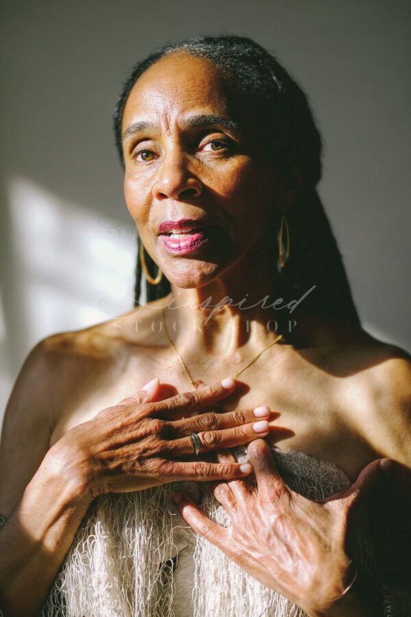 Keywords: aging, beauty, close-up, confidence, cultural, elderly, emotion, expression, eyes, fashion, focus, gesture, hands, jewelry, lips, mature, natural light, necklace, peace, portrait, radiant, realistic, reflective, serene, skin, soft lighting, speak, texture, thoughtful, throat, voice, woman, wrinkles