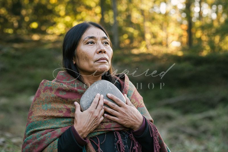 Keywords: autumn, calm, connection, contemplation, cultural, earthy, forest, heritage, holding, indigenous, meditation, meditative, mystical, natural, nature, outdoors, peaceful, reflection, reverence, sacred, serene, shawl, spiritual, stone, thoughtful, traditional, tranquil, wilderness, woman, wrapped