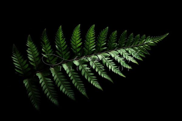 Keywords: background, black, botanical, closeup, dark, detail, environment, exotic, flora, foliage, forest, frond, green, growth, Here's a list of keywords: fern, isolated, jungle, leaf, macro, natural, nature, organic, pattern, plant, summer, symmetry, texture, tropical, vegetation, wilderness