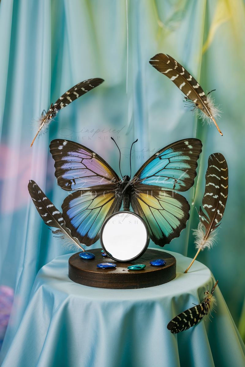 Keywords: aesthetic, arrangement, artistic, background, blue, blurred, bright, butterfly, colorful, conceptual, decorative, delicate, design, display, elegant, ethereal, fantasy, feathers, green, inspiration, interior, iridescent, mirror, nature, photography, soft, tranquility, vibrant, whimsy, wings