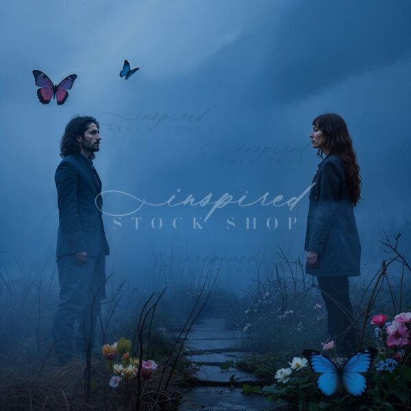 Keywords: atmospheric, bluehue, butterflies, cinematic, cloudy, contrast, drama, dreamlike, emotional, enigmatic, ethereal, fantasy, flowers, foggy, imagination, intrigue, landscape, moody, mysterious, mystical, nature, nightfall, pathway, serene, storytelling, surreal, visualart, whimsical