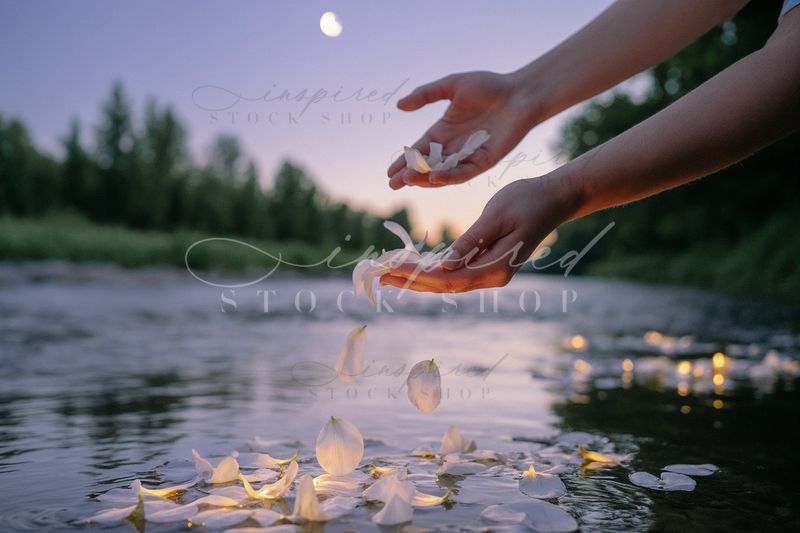Keywords: AI, ambient, balance, calm, cancer, cancerseason, dew, dusk, environment, evening, flow, flowers, hands, meadow, meditation, natural, nature, naturelovers, outdoors, peaceful, pedals, purity, reflection, ritual, river, serene, silhouette, softlight, tranquil, twilight, water, wellness, zen