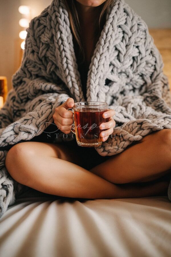 Keywords: beverage, blanket, calm, casual, comfort, cozy, home, hygge, indoors, intimate, knit, knitted, leisure, lifestyle, morning, peaceful, relaxation, relaxing, restful, self-care, serene, sitting, snuggle, soft, tea, tranquility, warmth, winter
