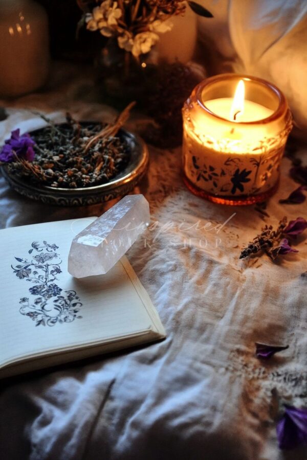 Keywords: AI, ambient, aromatherapy, artistic, bohemian, boho, calm, candle, cozy, crystal, decor, drawing, driedflowers, herbs, holistic, interior, lifestyle, meditation, mystical, notebook, organic, peaceful, relaxation, serene, sketch, spirituality, stilllife, texture, vintage, warm
