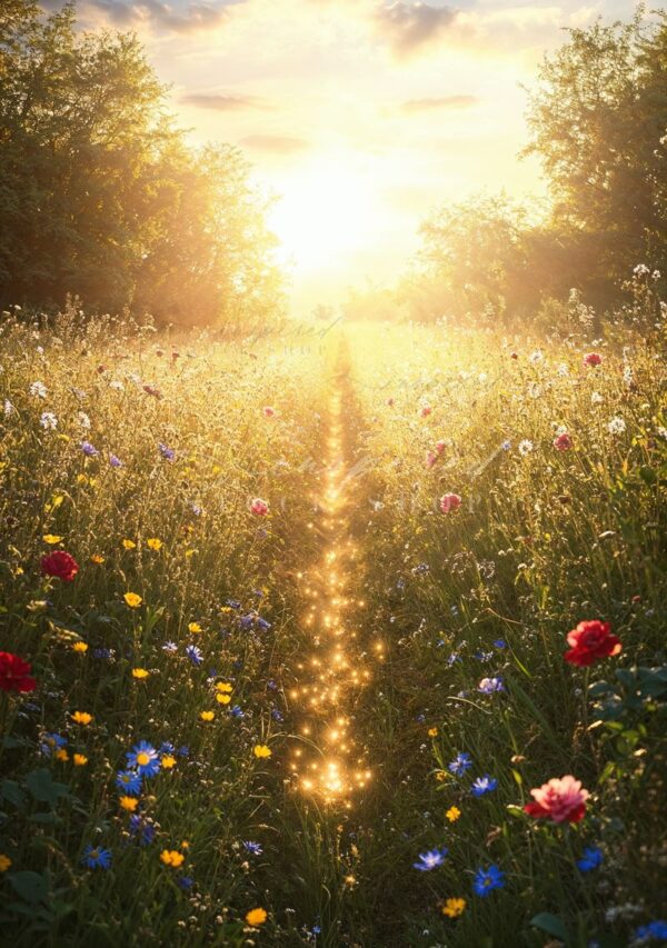 Keywords: AI, beauty, blooming, colorful, environment, ethereal, flora, glow, golden, idyllic, landscape, light, litha, magical, meadow, mystical, natural, nature, outdoor, pathway, peaceful, romantic, scenic, season, serene, summer, Summer Solstice, sunlight, sunset, sunshine, tranquil, trees, wildflowers