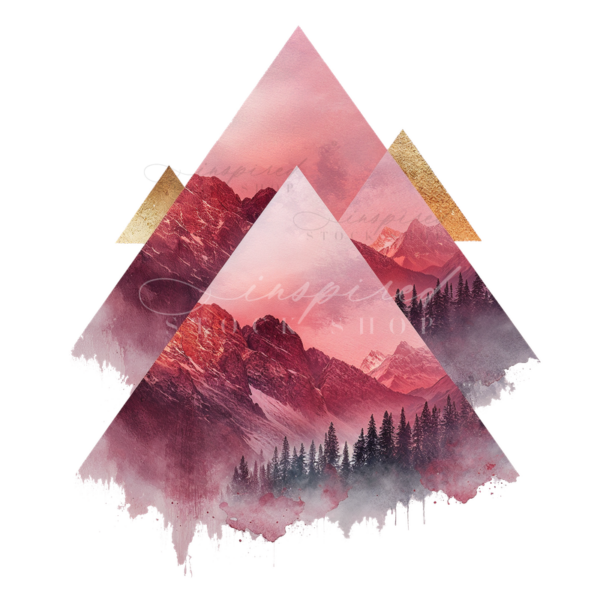 Keywords: abstract, aesthetic, art, artistic, background, contemporary, creative, decorative, design, digital, fantasy, forest, geometric, illustration, landscape, misty, modern, mountains, nature, pink, red, scenery, serene, stylized, symbolic, texture, trees, triangles, watercolor
