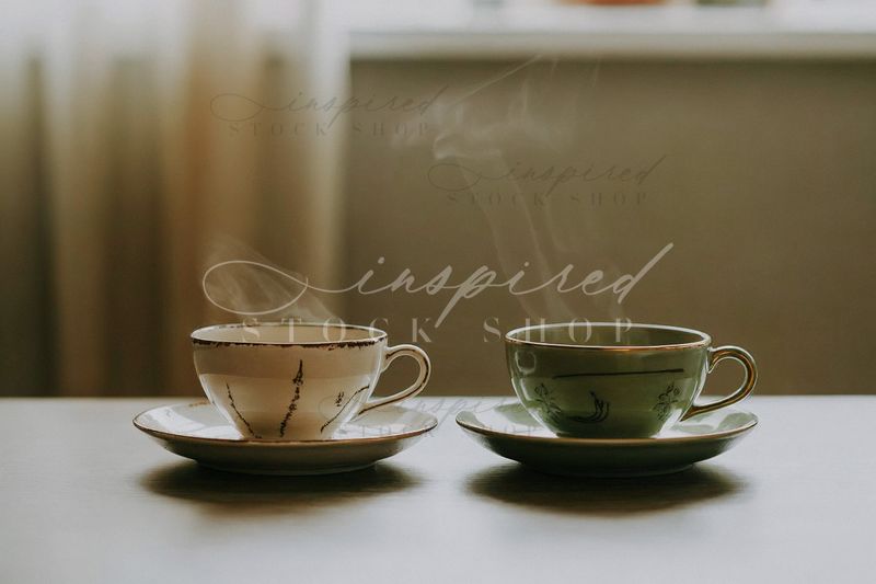 Keywords: beverage, breakfast, calm, ceramic, cozy, drinkware, duo, home, hot drink, indoors, interior, lifestyle, minimalism, morning, morning ritual, organic, pair, relaxation, rustic, saucer, serenity, simplicity, steam, still life, tea, teacup, teatime, tranquil, vintage, warmth