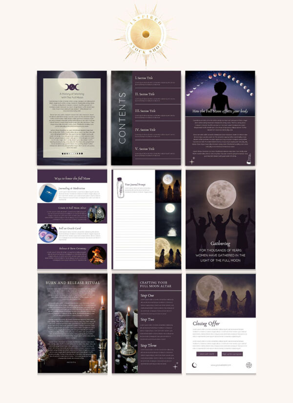 This easy to use 13 page Canva template Workbook will help you create a moon ritual workbook for your clients, courses or memberships. You can also use it as a lead magnet to increase your subscribers and email list.